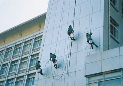 外墻清洗不僅要注意清洗技術,還要注意安全。確定供水供電位置:選擇合適的方法和工具清潔安裝吊籃、掛板等車輛,并在地面設置警示標志,停止繩索工作人員上班前檢查機械設備、電器、繩索、板材、鎖、安全繩是否損壞,確認后方可進行清洗作業。