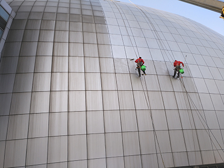 了解詳情介紹貴陽市外墻清洗花崗巖貴陽外墻清洗方法。用清水沖洗清洗水管,使花崗巖裝飾表面無污垢和清潔劑殘留。高空作業工人對花崗巖粗大裝飾面的清理程序如下:用洗滌劑溶液板刷將花崗巖表面的灰塵清除,將花崗巖孔內的污垢分離出來。
